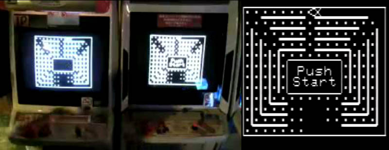 OK, so the hardware is quite primitive: a bare Z80, 2K of RAM, up to 16K of program ROM, and a video generator made out of 74-series logic ICs. The display HW feeds the screen with a 128x96 1-bit bitmap taken from the first 1.5K of RAM. The single input port to the CPU reads the JAMMA-connected 1P joystick, and the single output port from the CPU sets the entire background colour and foreground colour from a choice of only 8 colours: BLACK, RED, GREEN, YELLOW, BLUE, MAGENTA, CYAN, and WHITE. The hardware has no capability to set different colours for different regions/pixels of the screen; if you want more colours, you'll have to time the CPU to change the colours mid-display. There is no hardware provision for sound, sprites, or screen scrolling. The included Dottori-Kun game usually has its display set to Black and White all the time, with the 1st version having an all-white screen with black pixels, and the 2nd (new) version having a black screen with white pixels.