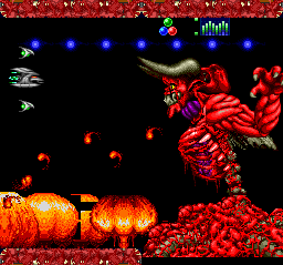 | It's back to the Bio-tech theme in this final stage, with most of the enemies returning from stage 5. The final boss is a rather tough demon with a few different types of attack. I was kind of disappointed there was nothing after this form... |