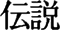 These characters together make up the word "densetsu," or "legend." The first character means "written record"; the second, "theory." Another word for Legend can be "monogatari," which literally means "spoken things," or "tale".