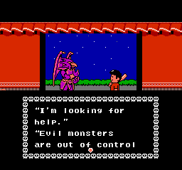 and just then he noticed a twinkling..." Yes, Japanese is much more compact than English. I like how they even changed the big "Hi" on Hiroshi's shirt to an "M" in the NES version. |