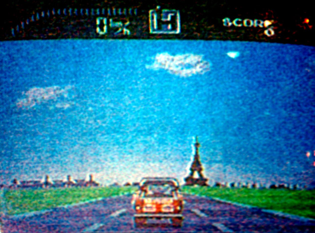 The Kung Fu shown at the PCE announcement looks identical to the released version, except the "Hudson Soft" font is different. Paris-Dakar Rally, also demonstrated, looks very close to the final Victory Run, except for missing parts wear indicators, and your vehicle, of course. Good thing Hudson wised up and dumped the dumpy-looking rally truck for the final smooth rally car (a Porsche?). But -- OOPS! -- the cover art for the Japanese Victory Run still shows the truck, doesn't it? |