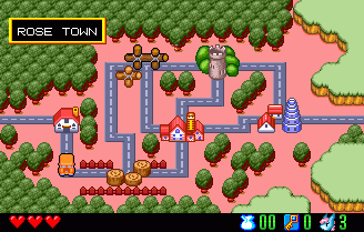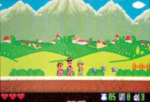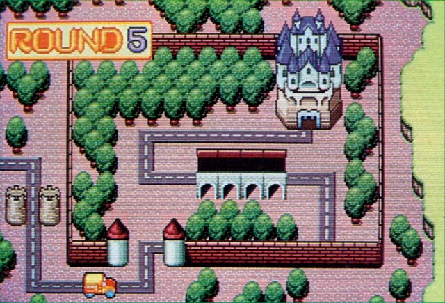 Top: The beta version's "ROUND 1" text is far more attractive than the final's. As you can also see, some houses used to be bus stops; and a final, minor thing, the tower in the house in the centre used to be grey. In the final, it has been changed to orange. Above: The narrow tower has been made wider in the final version. Also, the beta version had odd brick buildings in the same stage, which were changed to normal houses in the final. |