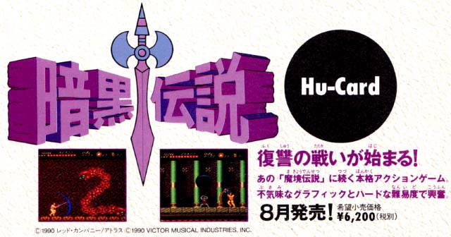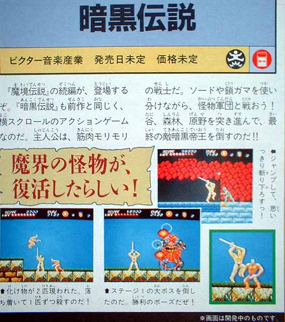 Ankoku Densetsu looks a little different in this ad.Namely, the backgrounds behind the bosses are not what you'd see in the final game. |