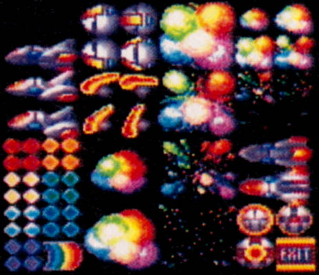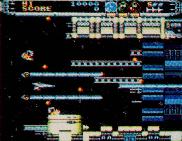 "Space Thunder" -- an early version of Gate of ThunderHere is a rare glimpse of Gate of Thunder with rather different stage, ship & option graphics. That's all, but it's pretty cool! |