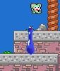I really like the blue vases in this early shot of ChouMakaiMura. Too bad they were taken out. (And the red clouds (?) in the background look good too.)