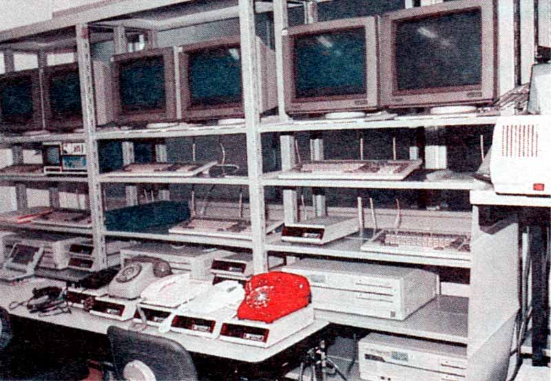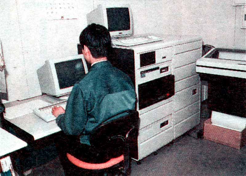 Found in an early 1987 issue of Famicom Magazine are a few scintillating photos of what looks like Famicom Disk System development hardware. Sitting above what could be a PC rack of sorts is an FDS drive hooked up to a black box, with some other white box connected to it via a ribbon cable. What does it all do? How are games stored or written to the disk? We may never know. |