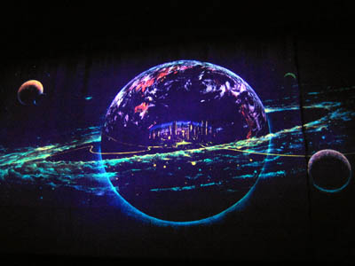 seen after dark. It uses glow-in-the-dark paint to show planets, galaxies,